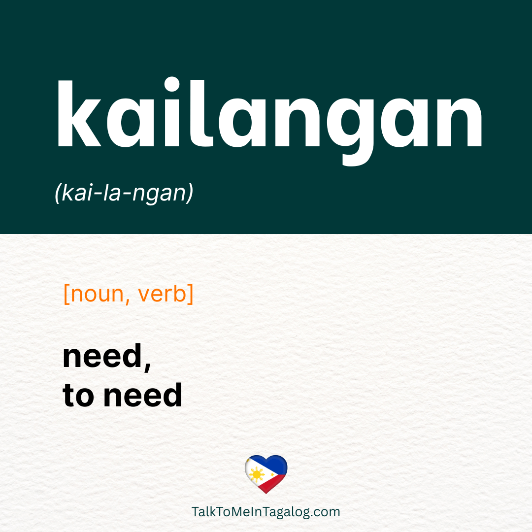 Whether you’re a beginner learning basic Tagalog vocabulary or someone who wants to sound more natural when expressing needs in Filipino, this is an easy way to understand how kailangan works in everyday speech.